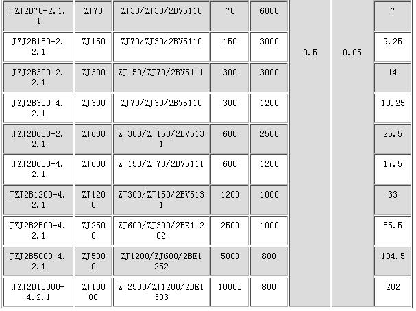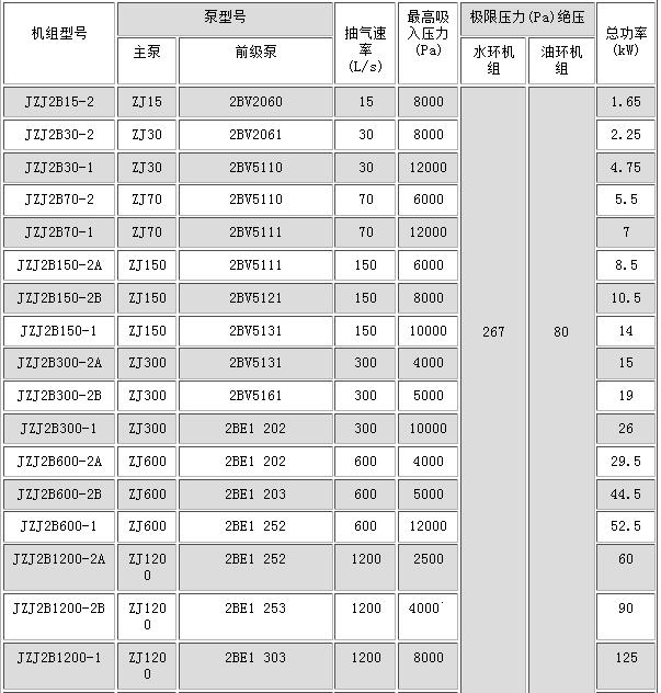 JZJ2B系列罗茨--水环真空机组技术规格: